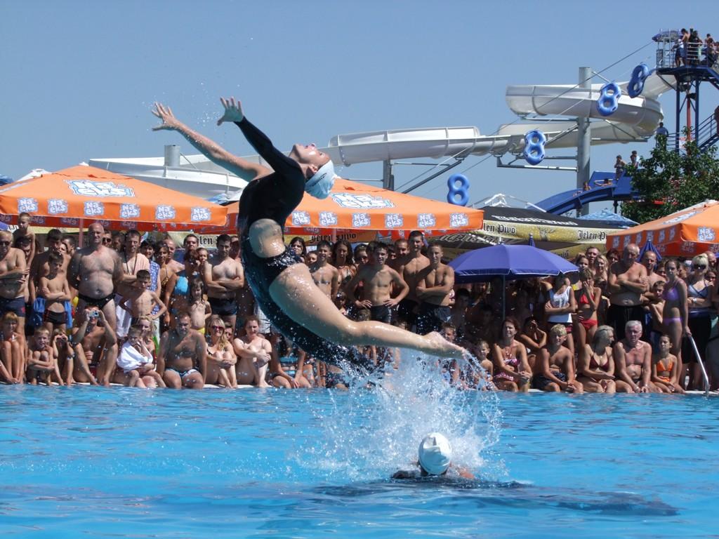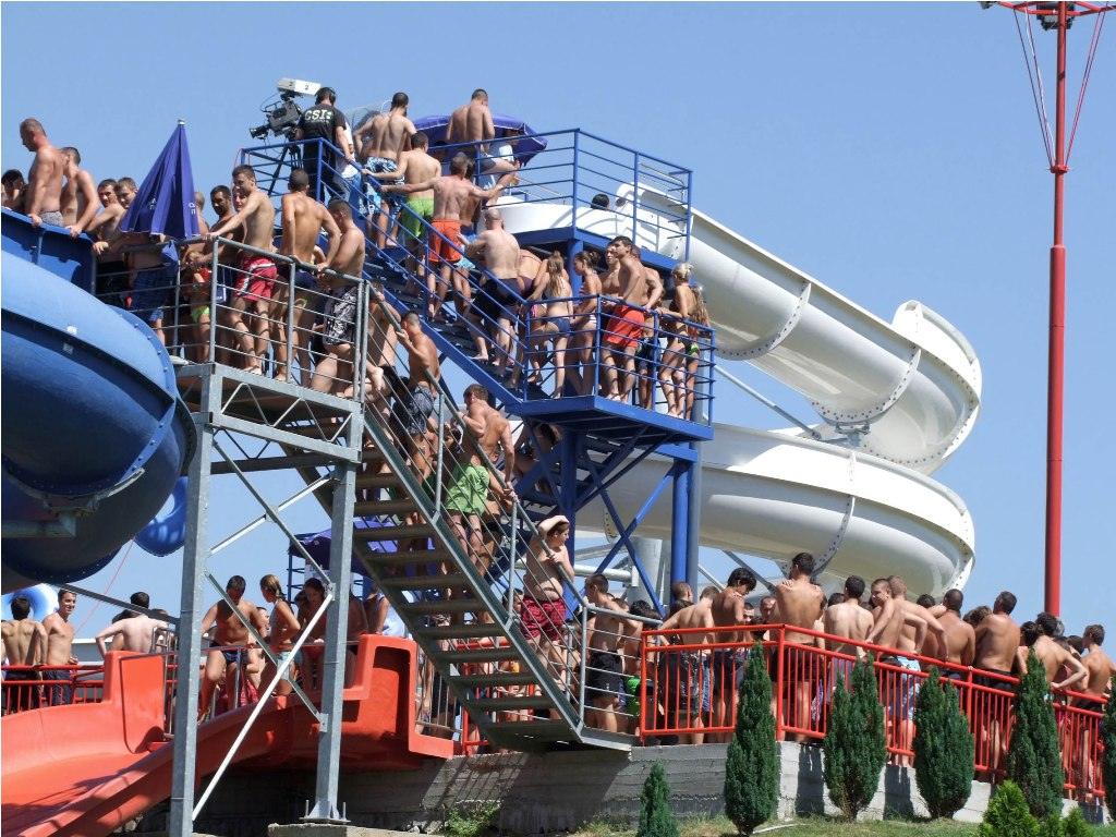 Sadrži sedam bazena za sportske i rekreativne aktivnosti sa vodenim atrakcijama za decu i sistemom tobogana ukupne dužine oko 600 metara.